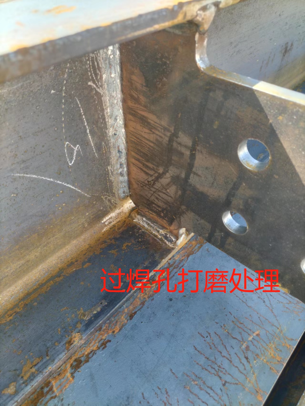 此加工構(gòu)件客戶提出了極為嚴格生產(chǎn)要求,鉚焊工藝標準很高,清渣打磨要做到干凈美觀,第三方探傷機構(gòu)要求每根構(gòu)件,每道焊縫進行檢測。